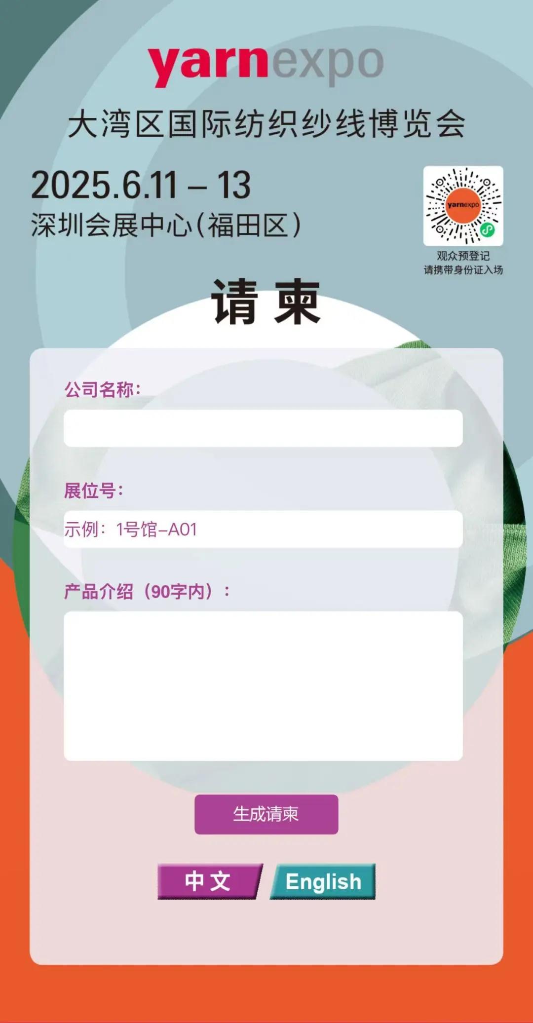 请按要求填写公司名称及展位号、产品介绍等相关信息,点击“生成请柬”按钮。