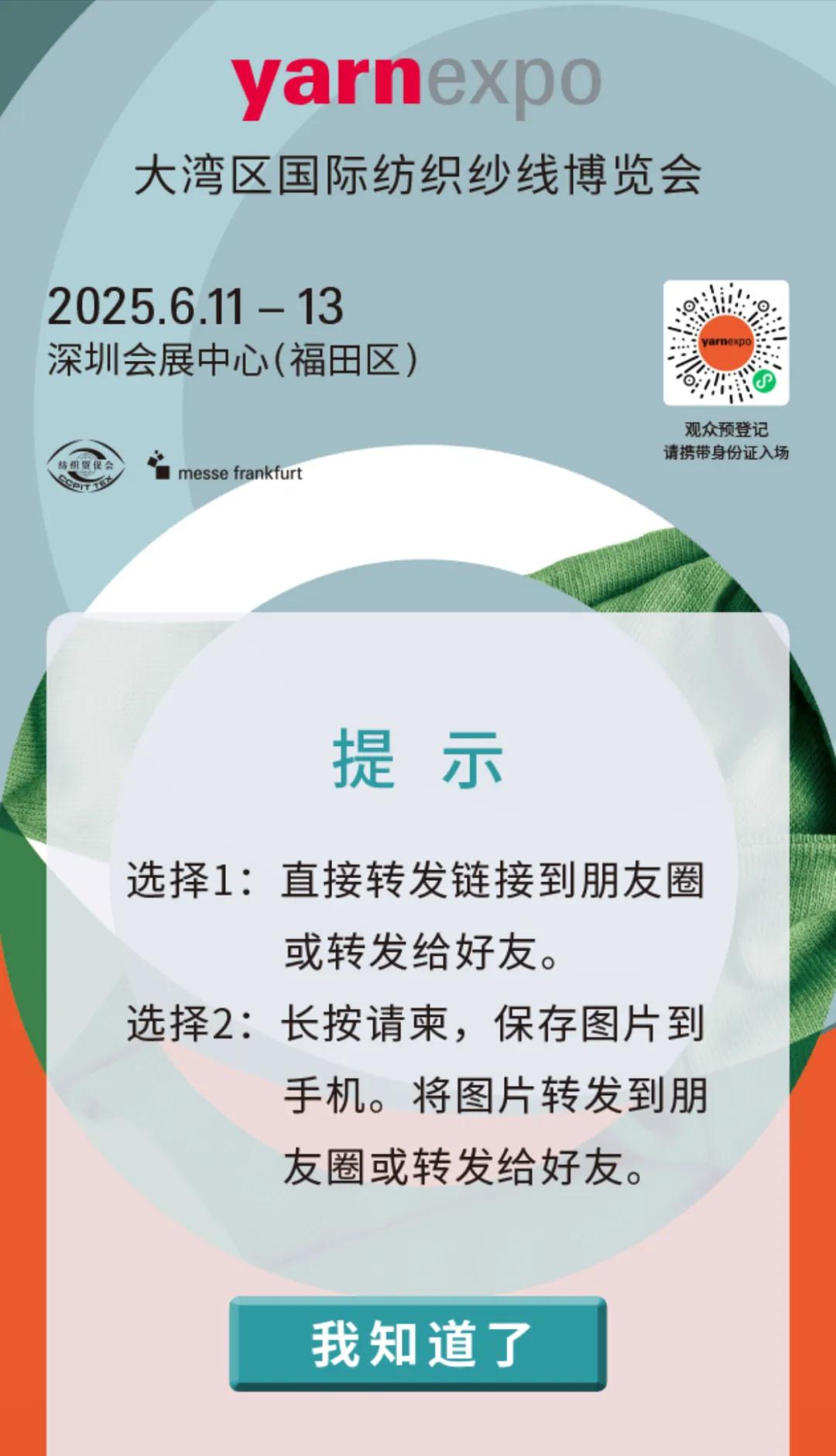 请点击“我知道了”按钮,生成请柬。长按生成页面保存图片转发,或直接转发至朋友圈。