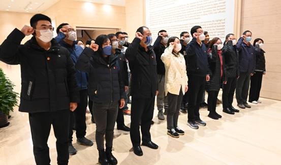 参加活动的党员干部员工在中共一大纪念馆及会址认真听取讲解介绍,仔细观看照片和实物展览,全方位沉浸式地接受了党性教育和思想洗礼。在宣誓区,全体党员面对党旗,庄严重温了入党誓词。