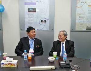 在纱线展贵宾室交谈