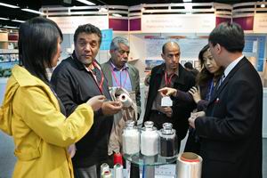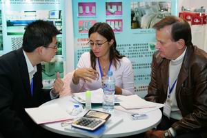 印度参展商仔细向中国买家推介产品