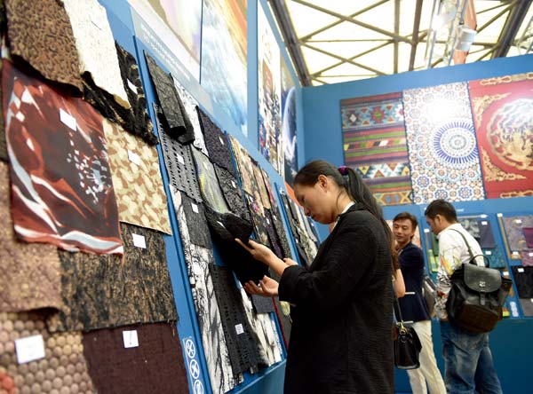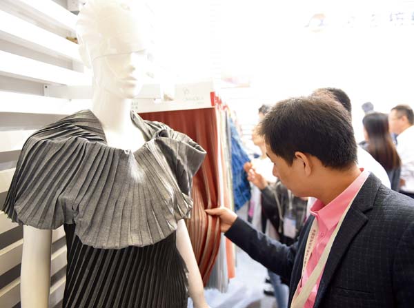 4、在时尚欧洲馆的潮流趋势展区,时尚新潮的面料吸引了买家的眼球。本展区展示了来自意大利的最新面料。