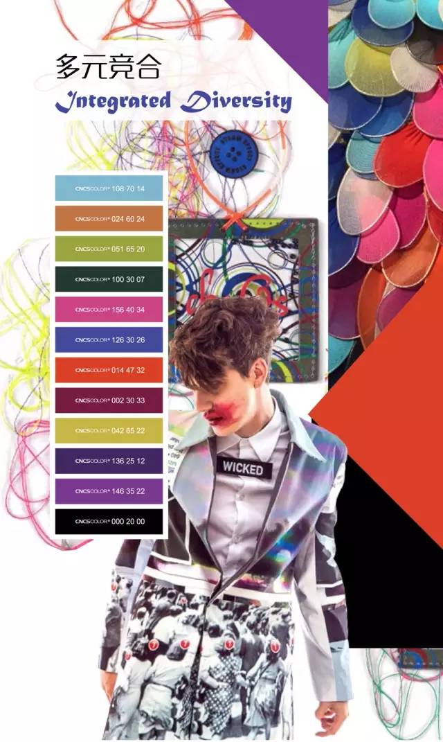 活跃的氛围营造出织物设计的灵动,丰富的想象力渲染出织物非常规的观感。新的科技概念与纺织技术通过艺术实验的手法组合的淋漓尽致。数码化的民俗图案,现代艺术风格的图案,色彩跳跃的花饰纱毛织物,饱满挺阔的装饰覆膜织物,膨胀而有活力的3D织物,花饰绗缝或压花织物。带有立体空间效果的面料,漆面效果皮革,染整科技制造的自然外观,科技感的金属光泽面料,装饰动感绗缝的效果。