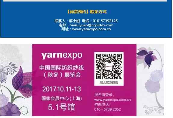 您现在的位置是:首页 > 展会报道 【2017yarnexpo秋冬纱线展】速来参加商贸配对,预定你的360°商机! 来源:纺织贸促会官微 发布日期:2017-08-22 字体: 【小】 【中】 【大】 分享: 热门文章: 2025intertextile春夏 | “友礼”同享齐观展... [2025-02-19] 2024年我国纺织行业经济运行总体平稳 [2025-02-17] 聚焦绿色智慧融合 展示产业用纺织品新趋势 [2025-02-11] 响应政策 落实服务 | PH Value义乌展全力“备战”中 [2025-02-11] 【亮星季】第一期正式开启 | 商贸先行,品质好礼享不停 [2025-02-10] 展会直通车