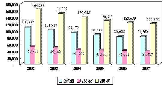 经历了30年的巨大变迁,德国纺织成衣业从业人数从55万逐年递减降至120,849人(纺织占81,362人、成衣39,487人),企业总数从4,000家减至1,300家(图3)。