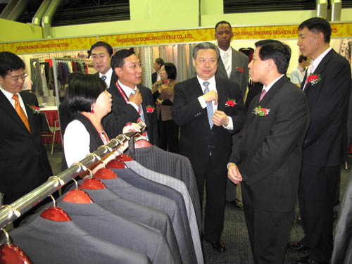 第十届"中国纺织品服装贸易展览会(纽约)"于2009年6月16日在纽约贾维茨会展中心隆重开幕。此次展览会是在金融危机的大背景下,以及近期的HIN1甲型流感的影响下,作为中国纺织工业协会和全行业的重要市场开拓活动,得到了有关机构和美国商贸界人士的积极支持。在昨天的开幕上,到场的嘉宾有:中华人民共和常驻联合国代表团特命全权大使张业遂先生、中华人民共和国驻纽约总领事彭克玉先生、中国纺织工业协会副会长兼中国国际贸促会纺织行业分会常务副会长张延恺先生、中国国际贸促会纺织行业分会副会长徐迎新先生、中国国际贸促会纺织行业分会副会长杨兆华先生、中华人民共和国驻美国大使馆公使衔参赞戴云楼先生、中华人民共和国常驻联合国代表团公使衔参赞张少刚先生、中华人民共和国驻纽约总领事馆商务参赞徐兵先生、中国国际贸易促进委员会驻美国代表处徐晨滨首席代表、纽约市长办公室国际业务和全球合作项目部主任Terry Jackson女士。