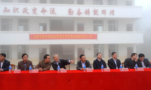 4月8日,中国纺织工业协会杜钰洲会长率领中国国际贸易促进委员会纺织分会、中国纺织摄影协会、中国纺织工业协会流通分会、广州白马服装市场以及广州名豪服饰公司的负责人,看望了云南元阳县新街镇中国纺织贸促会希望小学的师生们,并送去了700套《新华字典》和学生校服,以表达纺织人对他们的关怀。