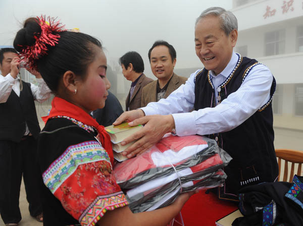 此行之前,《纺织服装周刊》杂志社便早早地向商务印书馆订购了700本《新华字典》并空运至云南;而中国纺织工业协会流通分会副会长、广州白马服装市场董事长赖秋收和广州名豪服饰公司总经理王志峰则是亲自携带了700套以红、白、蓝为主色调的学生服套装,专程从广州飞赴云南。