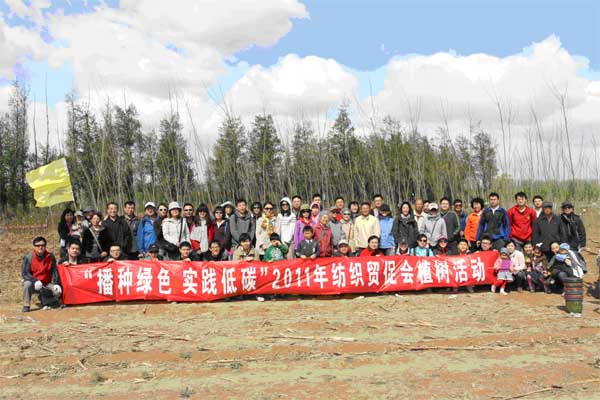 9点30许,纺织贸促会的常务副会长徐迎新,副会长陈伟康来到劳动现场,和参加植树的员工一起,为一颗颗树苗铲土填坑、挥锹培土、提水浇灌,共同种下树苗200余棵。