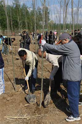 10点30许,植树活动圆满结束。今年是国际森林年,也是全民义务植树运动开展30周年。纺织贸促会2011"播种绿色 实践低碳"植树活动正是抓住契机,紧紧围绕人文北京、绿色北京发展战略,用自己的一份薄力为北京绿化美化建设做出了贡献。