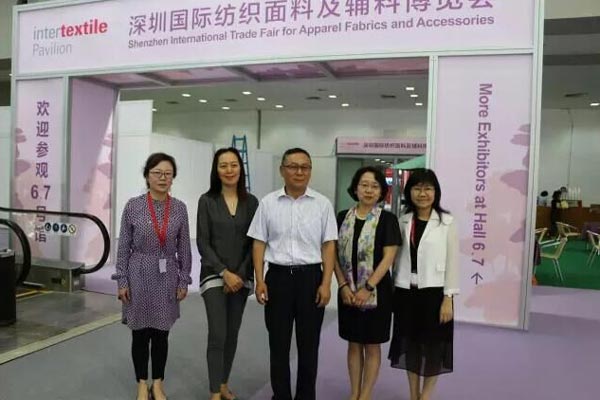 中国纺织工业联合会会长助理、中国国际贸易促进委员会纺织行业分会常务副会长徐迎新,中国国际贸易促进委员会纺织行业分会副会长常清,中国纺织信息中心主任乔艳津,国家纺织产品开发中心主任李斌红等行业协会领导参观了深圳面辅料展各个展馆及部分企业展位。