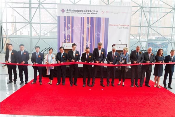 纽约当地时间2018年7月23日上午9时半,伴着雨后朝阳冉冉升起, “第十九届中国纺织品服装贸易展览会(纽约)”暨美国服装面料采购展(TEXWORLD USA)、纽约国际服装采购展(Apparel Sourcing USA)、纽约国际家纺采购展(Home Textiles Sourcing)(以下简称纽约展)在美国纽约贾维茨会展中心隆重开幕。