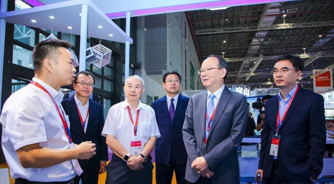新技术创新空间也获得了孙瑞哲一行的赞赏。此次“新技术创新空间”占地200平方米,以“纺织科技新领域、新视野”为主题,展示了纺织高性能复合功能材料、柔性结构材料制备技术的新进展,以及近年来我国纺织产业在 “卫生灾害响应”、“军队警察配套”及“特种安全防护”三个方面的新应用。