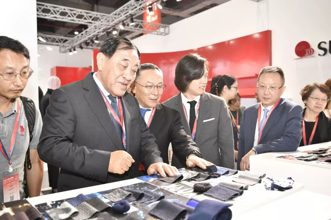 开幕首日,中国纺织工业联合会党委书记兼秘书长高勇,会长孙瑞哲,原会长杜钰洲、王天凯,原副会长许坤元,副会长杨纪朝、夏令敏,党委副书记陈伟康,副会长徐迎新、陈大鹏、李陵申、端小平、杨兆华、孙淮滨,专家咨询委员会委员陈树津、张延恺,中国工程院院士蒋士成等领导及嘉宾,在主办方中国国际贸易促进委员会纺织行业分会常务副会长梁鹏程、副会长林云峰、常清,秘书长张涛,中国纺织信息中心主任乔艳津,法兰克福展览(香港)有限公司高级总经理温婷的陪同下参观了展会。