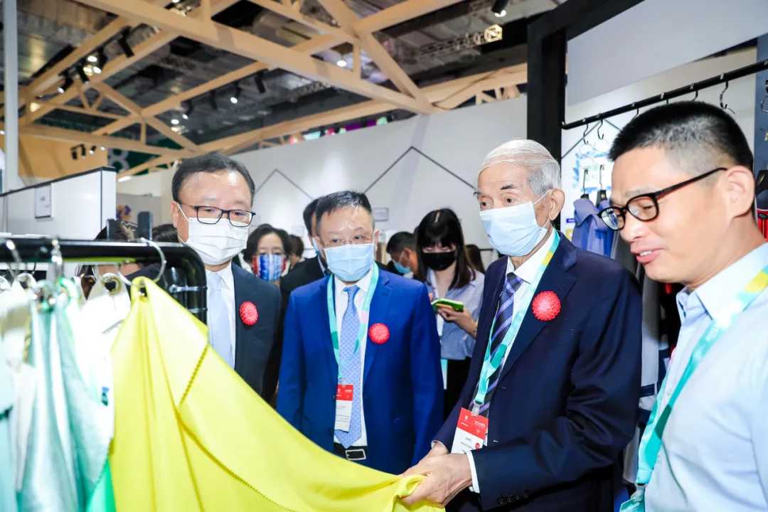 孙瑞哲、许坤元、徐迎新、杨兆华、张延恺以及中国国际贸易促进委员会纺织行业分会常务副会长梁鹏程、副会长常清,中国纺织信息中心主任乔艳津,法兰克福展览(香港)有限公司高级总经理温婷等首先来到纺织之光绿色技术成果展示区,工作人员介绍了绿色创新社群相关情况。市场导向的绿色创新将成为行业转型升级实现纺织强国的决定性因素,此次对纺织之光重点科技成果推广项目的推广和应用情况调查,重点在于评估推广和应用的实施效果以及在可持续发展方面的绿色效益。