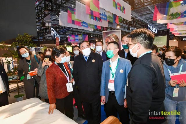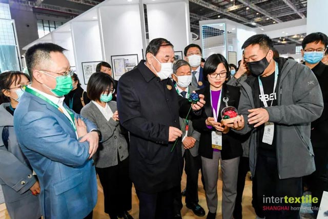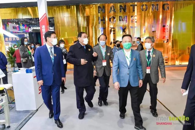 开幕首日,中国纺联党委书记兼秘书长高勇,会长孙瑞哲, 原会长王天凯,原副会长许坤元,副会长夏令敏,纪委书记王久新,副会长徐迎新、陈大鹏、李陵申、端小平、杨兆华, 原副会长杨东辉、张延恺、杨纪朝等中国纺联领导、各部门、各成员单位负责人,以及各地方协会负责人等嘉宾,在主办方领导中国国际贸易促进委员会纺织行业分会常务副会长梁鹏程、副会长常清、秘书长张涛的陪同下参观了本届联展。