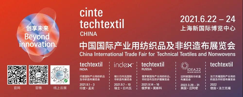 在“十四五”蓝图铺开之际,CINTE21汇聚全球优势资源,为行业搭起最直观、最有效的采购对接平台,集中展示国际领先产业用纺织品先进装备、先进工艺、综合解决方案,期待6月22-24日和众多精彩的相遇!