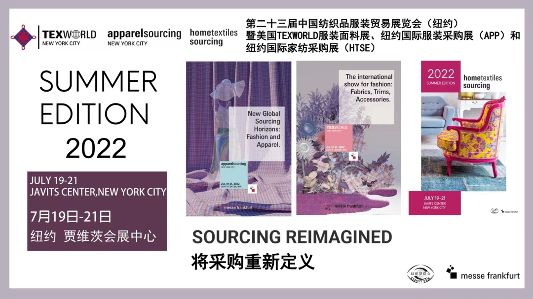 美国东部时间2022年7月19日上午10点,北京时间19日晚10点,由中国纺织工业联合会主办,中国国际贸易促进委员会纺织行业分会与法兰克福展览(美国)有限公司共同承办的2022中国纺织品服装贸易展览会(纽约)在贾维茨中心拉开帷幕。