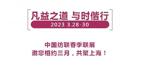 一年一度集结,一期一会相约。2023年3月28-30日,“中国纺联春季联展”将与业界再次相聚国家会展中心(上海)。届时,中国国际纺织面料及辅料(春夏)博览会、中国国际服装服饰博览会(春季)、中国国际家用纺织品及辅料(春夏)博览会、中国国际纺织纱线(春夏)展览会、中国国际针织(春夏)博览会五展再次联动,以昂扬之姿,展现纺织产业上下游在深度调整的大变局中集聚的变革和突破的力量。