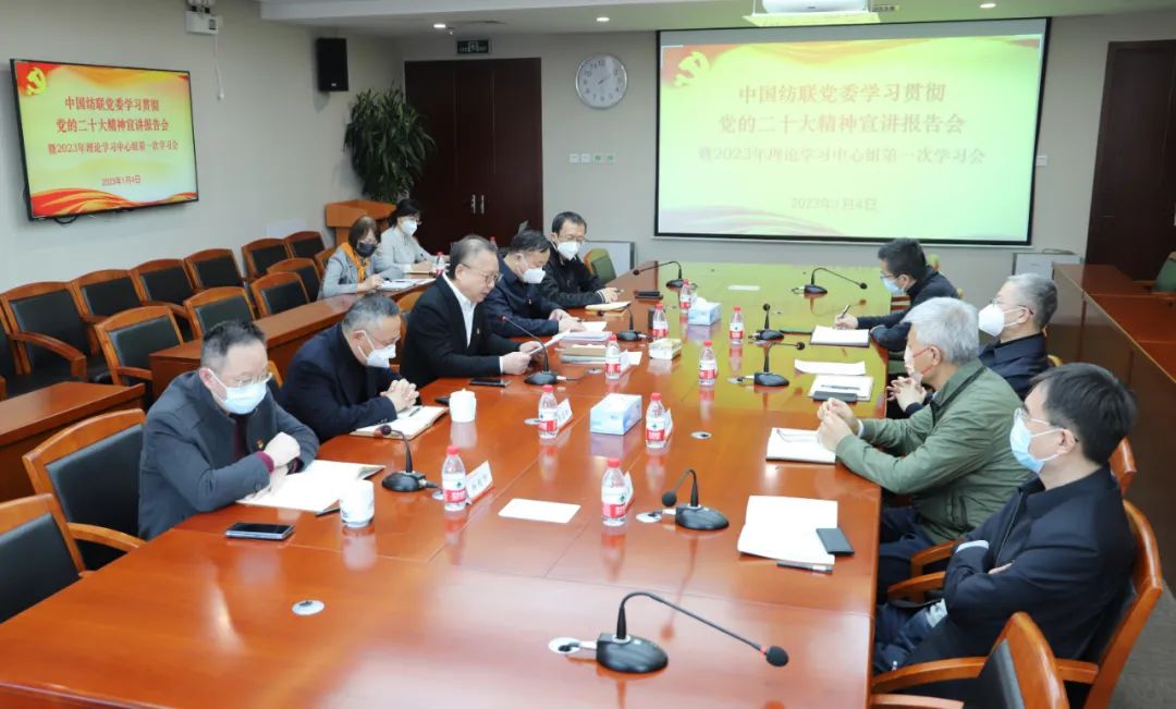 党的二十大召开以来,中国纺联党委带领所属各基层党组织深刻领会党的二十大精神的丰富内涵,认真研读二十大报告提出的新理念、新思路、新战略,深刻领悟“两个确立”,坚决做到“两个维护”,强化政治责任,对标中央要求,持续兴起学习宣传贯彻热潮,紧紧围绕党的二十大报告精神,以坚忍不拔的毅力,坚定必胜的信心,守初心践使命,推进行业高质量发展。