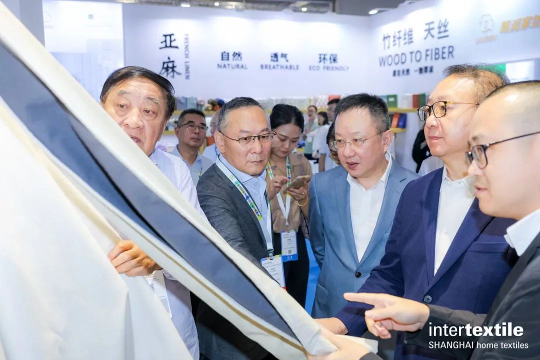 中国纺织工业联合会会长孙瑞哲,原会长王天凯,副会长徐迎新、杨兆华等中国纺联领导一行走访了2023intertextile秋冬家纺展,并在主办方中国国际贸易促进委员会纺织行业分会常务副会长梁鹏程,中国家用纺织品行业协会会长朱晓红,法兰克福展览(香港)有限公司总经理温婷的陪同下参观了展览会。