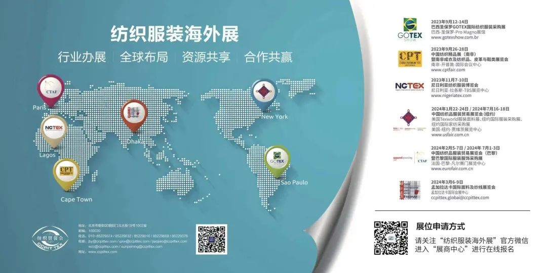 纺织贸促会将继续深入调研与开发巴西市场,按照品类体系化的与供应商沟通参展方案;根据市场可行性系统化的延伸展会服务;最重要的是根据市场变化动态调整招商方案,为行业做好服务,稳固巴西GOTEX展在中巴纺织服装贸易中桥头堡的位置。