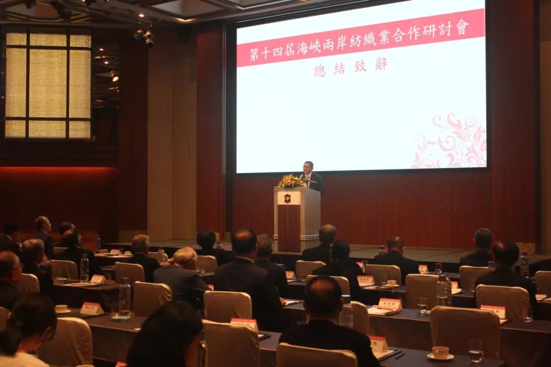 在会议总结环节,台湾纺织业拓展会董事长郭绍仪、中国纺织工业联合会副会长徐迎新分别代表双方做总结发言。