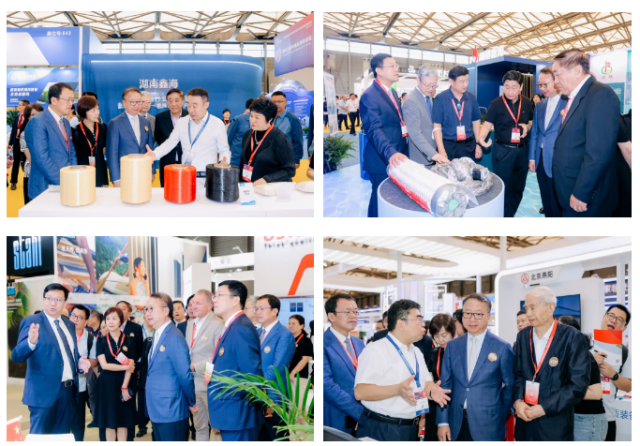 开展首日,中国纺织工业联合会会长 孙瑞哲 、原会长 王天凯 、原副会长 许坤元 、秘书长 夏令敏 、副会长 李陵申 ,中国纺联相关单位领导,以及来自多个国家及地区行业协会嘉宾,在展会主办方中国国际贸易促进委员会纺织行业分会常务副会长 梁鹏程 、中国产业用纺织品行业协会会长 李桂梅 、法兰克福展览有限公司纺织品及纺织技术展副总裁 Olaf Schmidt 的陪同下参观了本届展会。