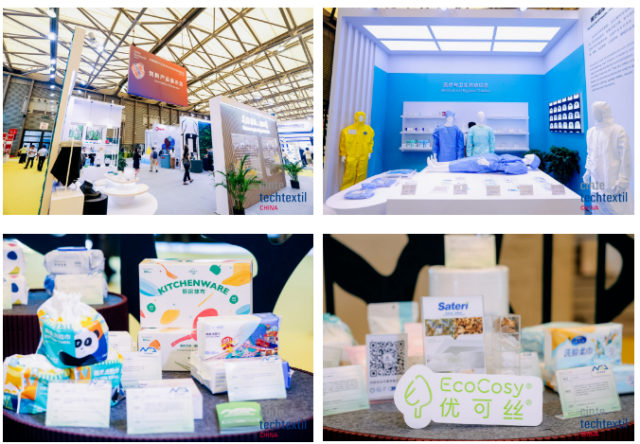 此外,必得福复合高透气弹性非织造布生产的拉拉裤、经期裤,阳光卫医科技展示的纺粘、水刺非织造材质的一次性浴袍等产品,杭州凤凰的擦拭湿巾,北京时尚控股的时尚功能服装等展品,为满足人们对美好生活的需要提供了更多可能。