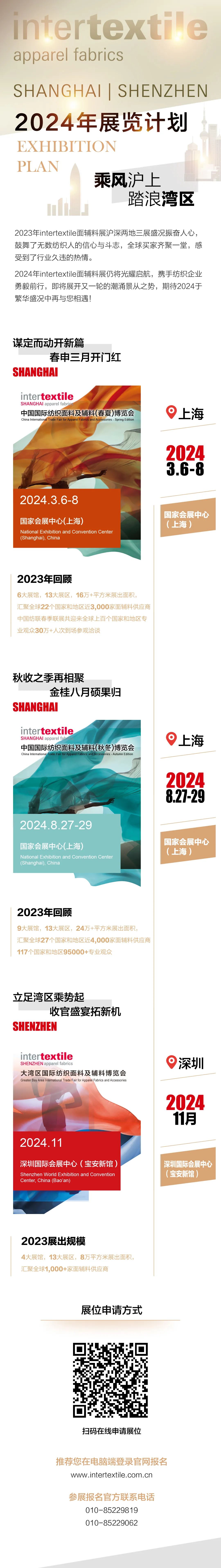 您现在的位置是:首页 > 新闻头条 聚焦 | 一图了解intertextile面辅料展2024年展览计划 来源:纺织贸促会 发布日期:2023-10-16 字体: 【小】 【中】 【大】 分享: 热门文章: 2025intertextile春夏 | “友礼”同享齐观展... [2025-02-19] 2024年我国纺织行业经济运行总体平稳 [2025-02-17] 聚焦绿色智慧融合 展示产业用纺织品新趋势 [2025-02-11] 响应政策 落实服务 | PH Value义乌展全力“备战”中 [2025-02-11] 【亮星季】第一期正式开启 | 商贸先行,品质好礼享不停 [2025-02-10] 展会直通车