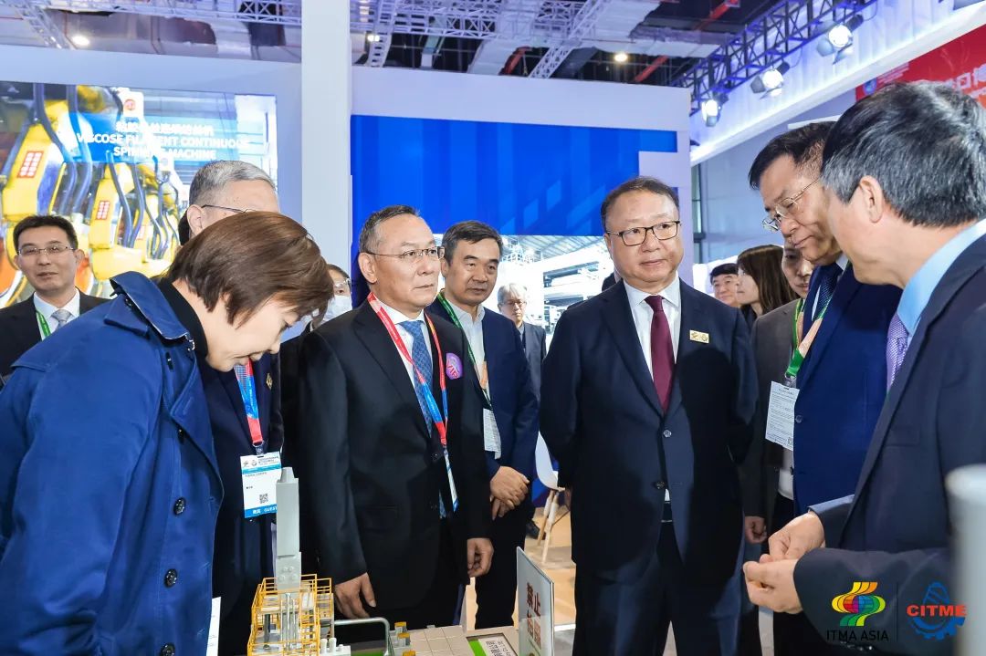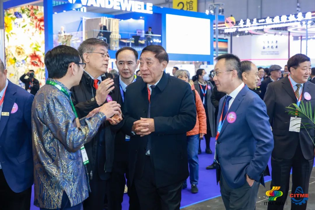 中国纺织工业联合会会长孙瑞哲,原会长王天凯,秘书长夏令敏,党委副书记陈伟康,副会长徐迎新、端小平、杨兆华,原副会长张延恺、杨纪朝,中国工程院院士、东华大学校长俞建勇以及来自中国纺联各部门、各专业协会和事业单位主要负责人、高校代表等领导嘉宾在展览会主办方领导的陪同下参观了本届展会。