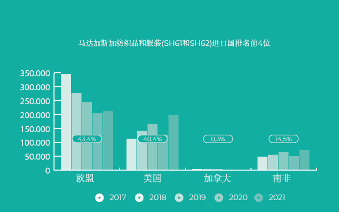 2、对美国和欧洲市场的免税准入。因为受益于非洲增长机会法(AGOA),马达加斯加的公司可以向美国免税出口产品,同时在经济伙伴关系协定(EPA)框架内向欧盟免税出口。