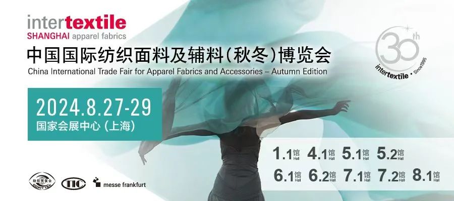 intertextile中国国际纺织面料及辅料(秋冬)博览会启用1.1馆、4.1馆、5.1馆、5.2馆、6.1馆、6.2馆、7.1馆、7.2馆、8.1馆,携手近4000家参展商总览全球面辅料精品,促全球产业发展合作共赢。