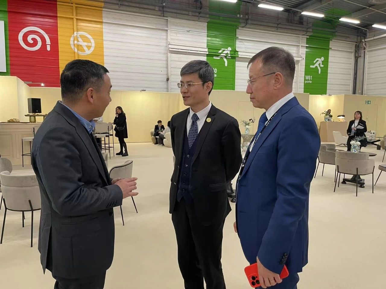 湖州市贸促会党组书记王建民率团参观展会并与展会中外主办方就结合该展会平台服务持续支持企业出海进行交流。