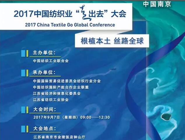9月7日,南京,国家发改委和商务部的一线司局将出席2017中国纺织业“走出去”大会,为行业带来最权威的解读。