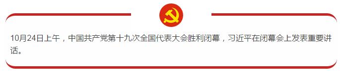 中国共产党第十九次全国代表大会各项议程到今天已经全部完成。在全体代表共同努力下,这次大会开成了一次不忘初心、牢记使命、高举旗帜、团结奋进的大会。