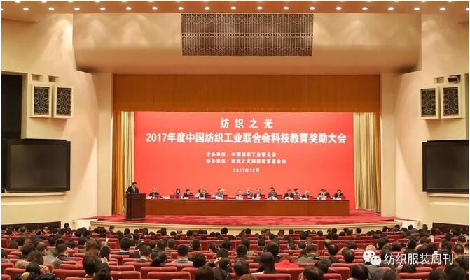 12月18日下午, 由中国纺织工业联合会主办,纺织之光科技教育基金会协办的“纺织之光”2017年度中国纺织工业联合会科技教育奖励大会在庄重威严的北京人民大会堂召开。
