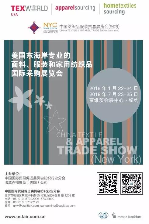 每年两次的中国纺织品服装贸易展览会(纽约)将于2018年1月22日-24日在纽约贾维茨展览中心与您如约相见。现将展会期间的研讨论坛活动予以分享: