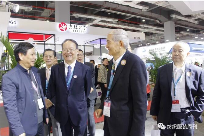 在当天上午的首场参观中,中国纺织工业联合会党委书记兼秘书长高勇,会长孙瑞哲,原会长杜钰洲、王天凯,原副会长许坤元,副会长杨纪朝、夏令敏,党委副书记陈伟康,纪委书记王久新,副会长徐迎新、陈大鹏、李陵申、端小平、杨兆华、孙淮滨,专家咨询委员会委员陈树津、张延恺、徐文英,中国工程院院士蒋士成、俞建勇等行业领导及专家参观春季五展,共鉴中国纺织新姿。