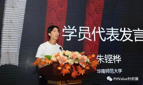 结业仪式上,来自华南师范大学的朱铿桦代表学员发言,他表示:“作为一名高校的服装设计专业教师,提升对针织工艺的理解和掌握实操技能是非常重要的,相信很多参与培训的教师学员都有和我同样的感受,这也是我们参加此次针织设计工艺培训班的主要目的,对我们今后在针织设计与工艺课程的教学方面有很大的帮助。