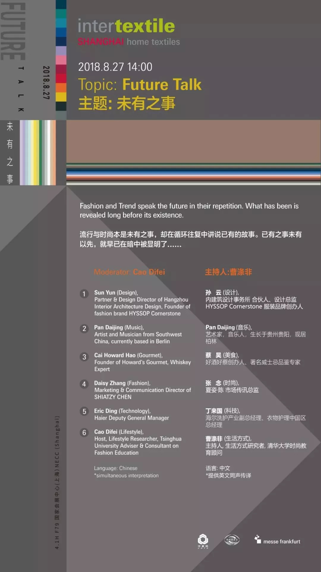哈哈,是的,你没听错也没看错,今年中国国际家用纺织品及辅料(秋冬)博览会邀请到知名主持人曹涤非先生以及内建筑事务所合伙人、设计总监孙云先生将跨界从综艺领域带到时尚领域,邀约时尚达人、知名美食品鉴者、家电业领军者共话未有之事!