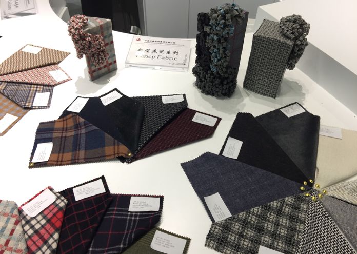 挑选服饰时除了版型还有什么也十分重要?面料质感!所以在intertextile秋冬面辅料展上,让更多专业买家能够全方位的了解产品,才能更充分的展示实力。在宁波中鑫的展位上,你会知道“看"面料是远远不够的,”摸”才够。中心位置展示的一件时尚的男士西装应用了粗纺工艺制作出了精纺的面料手感,既有质感又十分轻巧,另一款面料看似普通,摸上去才能感觉到它凹凸的立体效果,细节之处尽显时尚魅力,给人带来意外惊喜。