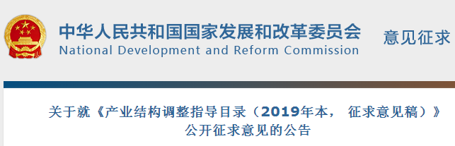 为贯彻习近平新时代中国特色社会主义思想和党的十九大精神,加快建设现代化经济体系,推动产业高质量发展,按照《国务院关于实行市场准入负面清单制度的意见》和《国务院关于印发打赢蓝天保卫战三年行动计划的通知》的要求和部署,国家发展改革委会同有关部门对《产业结构调整指导目录(2011年本)(修正)》进行了修订,形成了《产业结构调整指导目录(2019年本,征求意见稿)》,于4月8日发布并向社会公开征求意见。