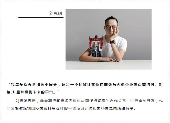 深圳,拥有2800多家服装企业,95%自主品牌,年销售额超过2400亿元。这组数字背后,是强大设计力量的支撑,而这股设计力量,也始终是深圳国际面辅料展最亲密的老朋友之一。一起来看看,设计师如何说......