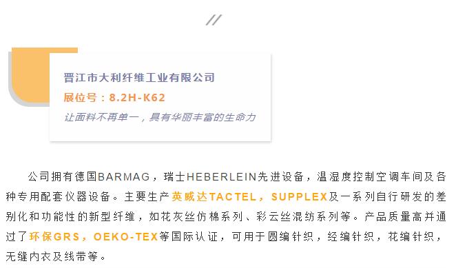 2019秋冬纱线展上,将有约140家花式纱展商带来各式创意花式纱、品质毛纱以及绿色麻纱。并且,本届展会将首次设立Fancy Yarn Vision花式纱主题区,从花式纱参展商中征集、展示时尚、高品质创新纱线产品,以丰富多彩的织片、成品呈现花式纱线的功能性和时尚、优雅、华丽之美。本篇分享花灰丝仿棉、彩云丝混纺等差异化和功能性新型纤维,金银线及相关产品。