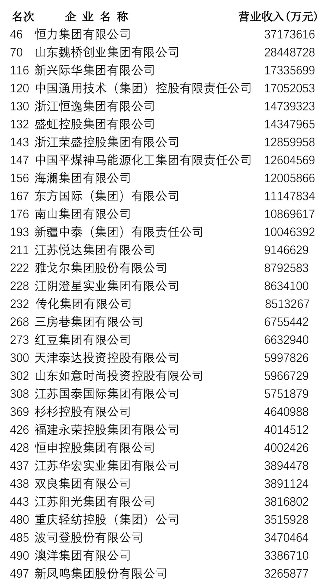 9月1日,中国企业联合会、中国企业家协会发布2019年中国企业500强榜单,包括制造业企业244家,服务业企业173家。记者经过查询榜单,梳理出纺织服装以及相关企业31家。他们是: