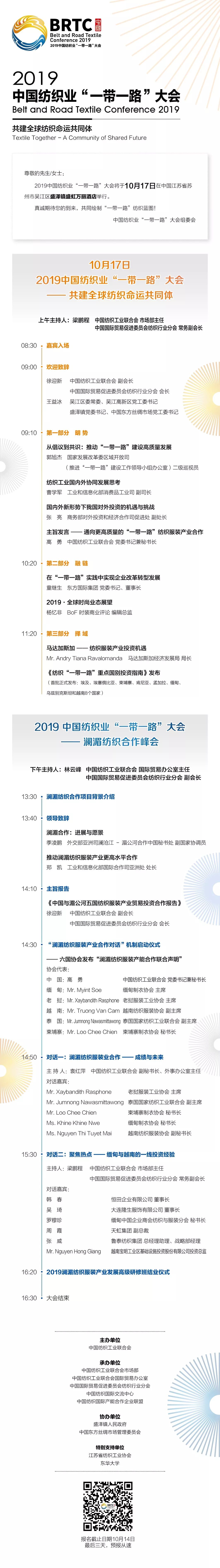 您现在的位置是:首页 > 要闻 官宣 | 2019中国纺织业“一带一路”大会日程正式发布 来源:纺织贸促会 发布日期:2019-10-11 字体: 【小】 【中】 【大】 2019中国纺织业“一带一路”大会倒计时6天,大会日程正式发布。 分享: 热门文章: 2025intertextile春夏 | “友礼”同享齐观展... [2025-02-19] 2024年我国纺织行业经济运行总体平稳 [2025-02-17] 聚焦绿色智慧融合 展示产业用纺织品新趋势 [2025-02-11] 响应政策 落实服务 | PH Value义乌展全力“备战”中 [2025-02-11] 【亮星季】第一期正式开启 | 商贸先行,品质好礼享不停 [2025-02-10] 展会直通车