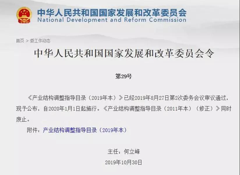 《产业结构调整指导目录(2019年本)》