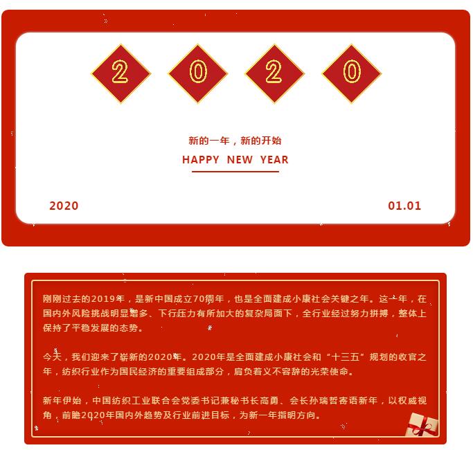 道阻且长,行则将至。2020年是充满希望和挑战的一年,新的一年开启新的希望,新的征程承载新的梦想。希望广大纺织行业工作者,不忘产业报国初心,牢记强国富民使命,不驰于空想,不骛于虚声,以求真务实的精神、奋发有为的姿态,直面挑战,开启行业发展新篇章。