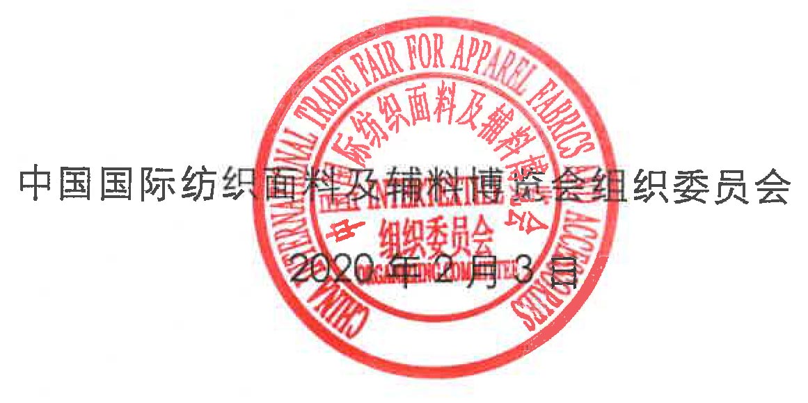 根据新型冠状病毒感染的肺炎疫情防控需要,上海市已启动重大突发公共卫生事件一级响应机制。为进一步做好疫情防控工作,切实保障广大展商、专业观众及相关工作人员的身体健康与生命安全、确保国内外参展商的参展效果,原定于2020年3月11至13日在国家会展中心(上海)举办的"2020中国国际纺织面料及辅料(春夏)博览会"将延期举办,由此给您带来的不便,我们深表歉意。同时,我们将做好各项保障措施,确保延期举办展会效果不受影响。
